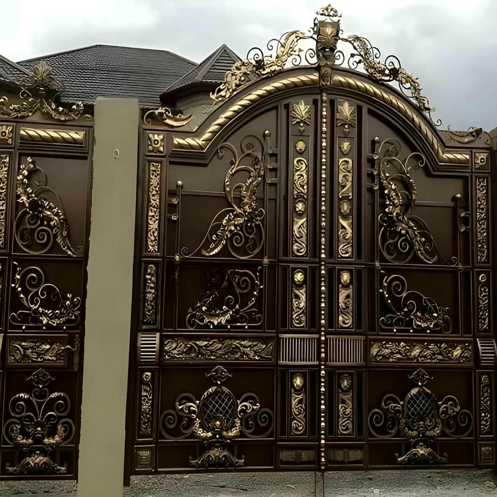 درب فلزی ساده و شیک فرفورژه ترکیب ظرافت و استحکام با طرح های تزئینی ساده برای ویلاها و ساختمان های کلاسیک.