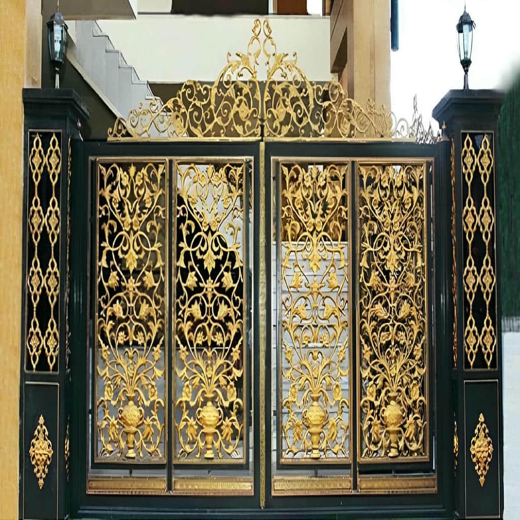 درب های کلاسیک با طرح های فرفورژه و تاج های تزئینی, مناسب برای ویلاها و ساختمان های لوکس با زیبایی و استحکام بالا. |