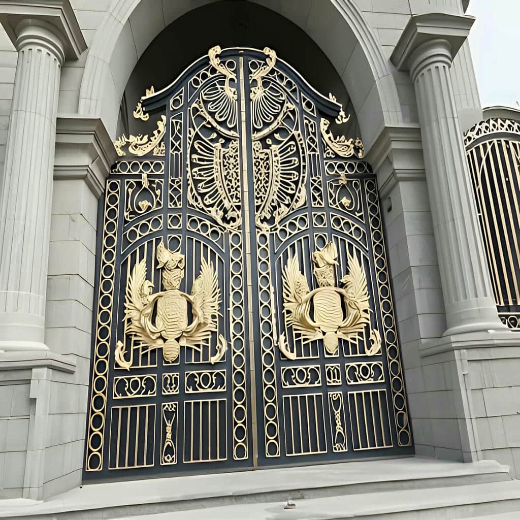 ترکیب قطعات چدنی تزئینی با قاب فولادی مستحکم برای نمایی سلطنتی و مقاوم. |